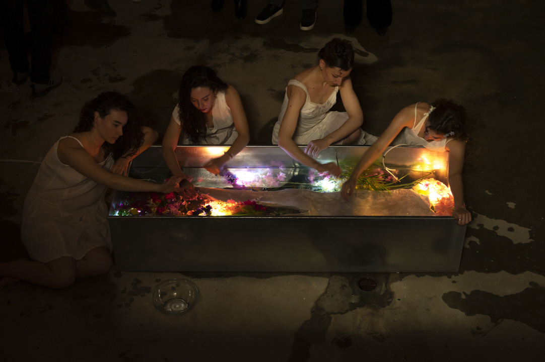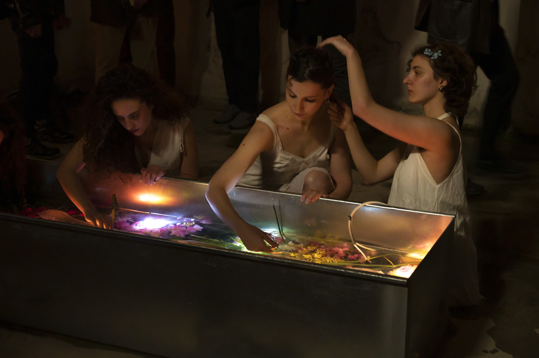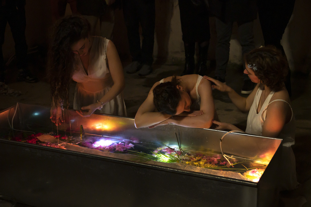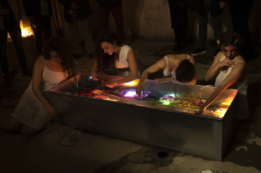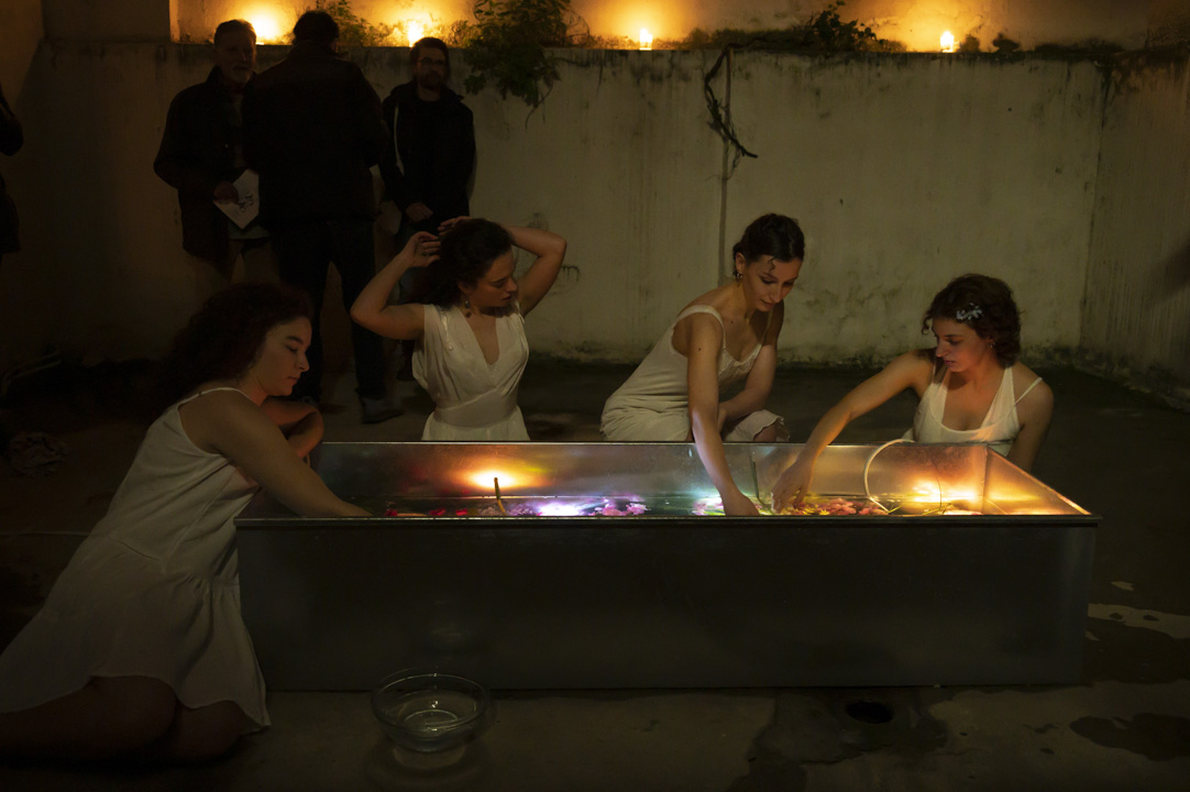 Στα πλαίσια της έκθεσης ΡΕΥΣΤΑ ΟΡΙΑ | FLUID BOUNDARIES | 6 χώροι | 46 καλλιτέχνες σε επιμέλεια Κώστα Πράπογλου, η Sotiropoulos Art Gallery διοργάνωσε επιτελεστική δράση, συνοδευτική του έργου Οφηλία της Κωνσταντίνας Καραχάλιου. Στην επιτελεστική δράση συμμετείχαν οι απόφοιτες της Ανώτερης Επαγγελματικής Σχολής Χορού του Ωδείου Αθηνών Κόλλια Νεφέλη, Κουϊτζόγλου Ελπίδα, Φαρμακοπούλου Σοφία και Φούφη Ντοριάνα.
