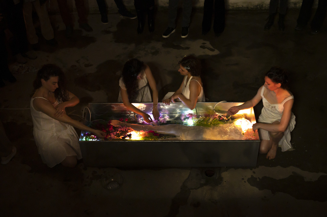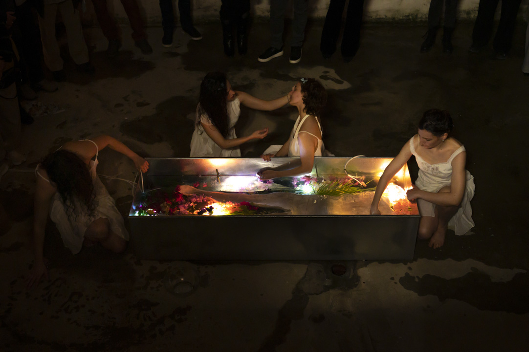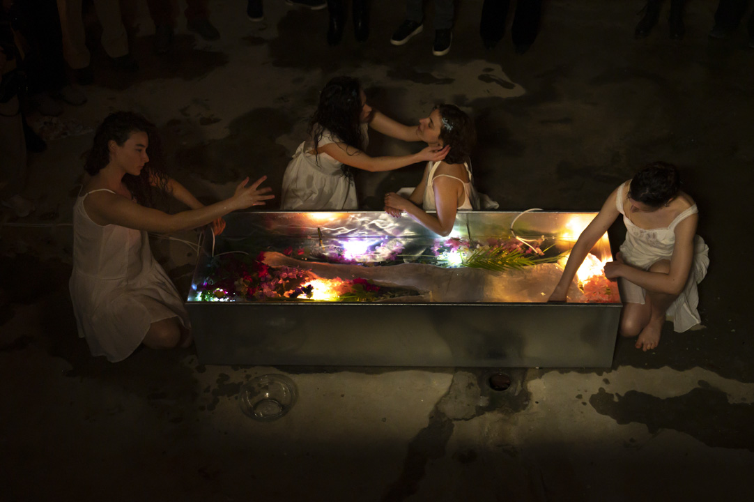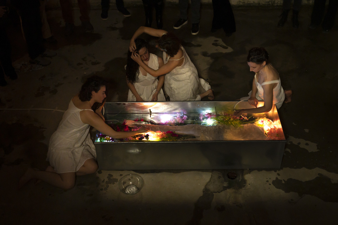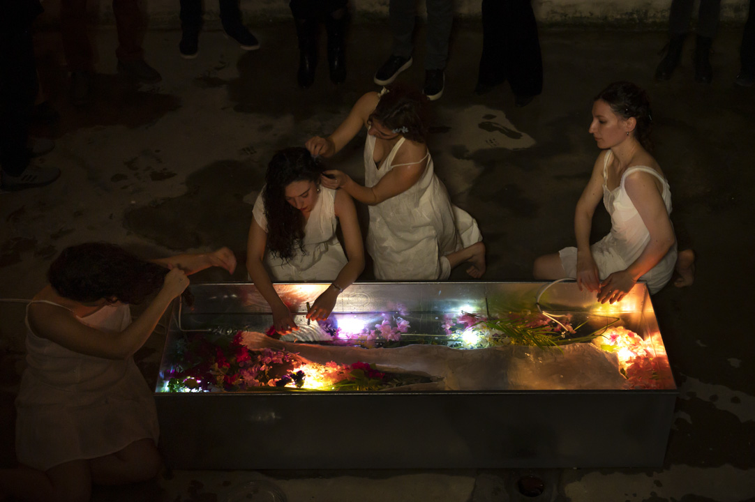 Στα πλαίσια της έκθεσης ΡΕΥΣΤΑ ΟΡΙΑ | FLUID BOUNDARIES | 6 χώροι | 46 καλλιτέχνες σε επιμέλεια Κώστα Πράπογλου, η Sotiropoulos Art Gallery διοργάνωσε επιτελεστική δράση, συνοδευτική του έργου Οφηλία της Κωνσταντίνας Καραχάλιου. Στην επιτελεστική δράση συμμετείχαν οι απόφοιτες της Ανώτερης Επαγγελματικής Σχολής Χορού του Ωδείου Αθηνών Κόλλια Νεφέλη, Κουϊτζόγλου Ελπίδα, Φαρμακοπούλου Σοφία και Φούφη Ντοριάνα.